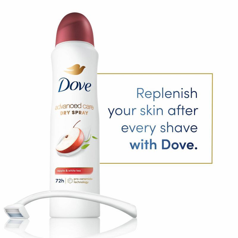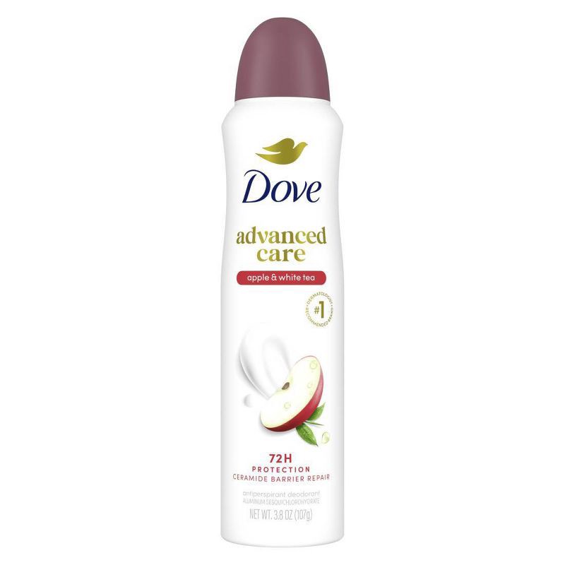 - CARES & PROTECTS: Dove Advanced Care Apple & White Tea Antiperspirant Deodorant Spray for beautifully soft, resilient skin