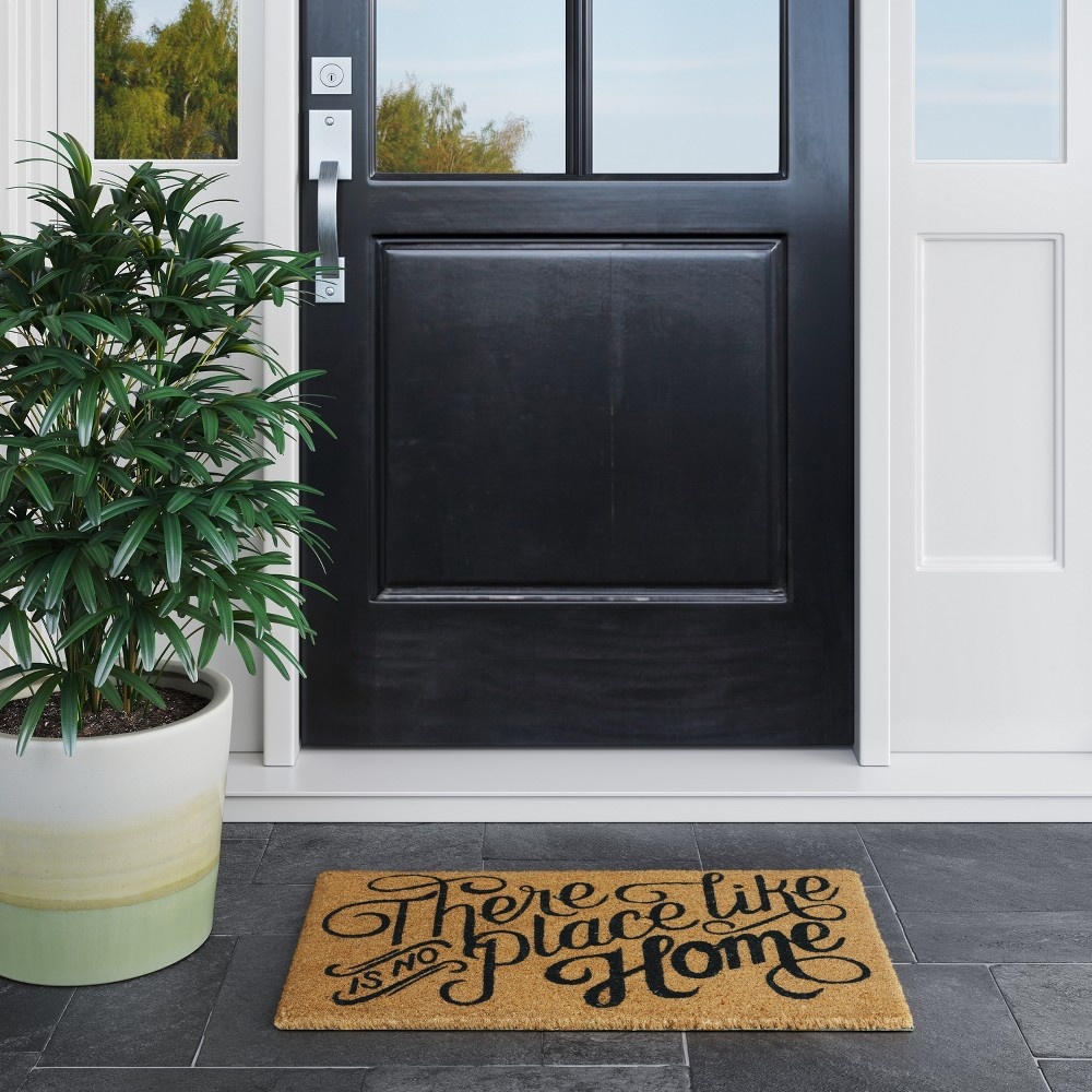 Add sweet, simple style to your entryway or foyer decor with this Quote Doormat from Threshold. This rectangular outdoor mat showcases a cheerful text reading “there is no place like home” that adds a…