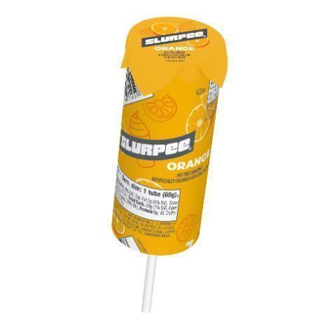 Creamy, cool orange slurpee flavored ice cream in a on the go tube