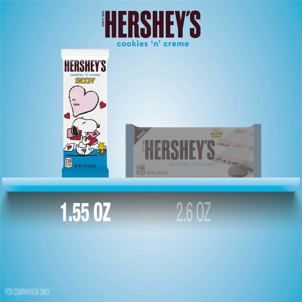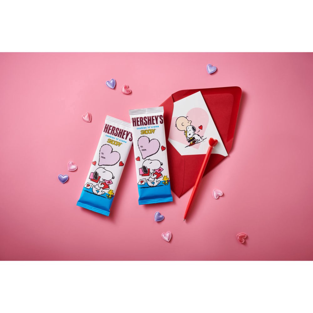 Treat your loved ones this Valentine's Day with HERSHEY'S Cookies 'n' Creme candy bars featuring Snoopy and friends. Perfect for snack breaks, movie nights, classroom Valentine exchange and sweet shar…