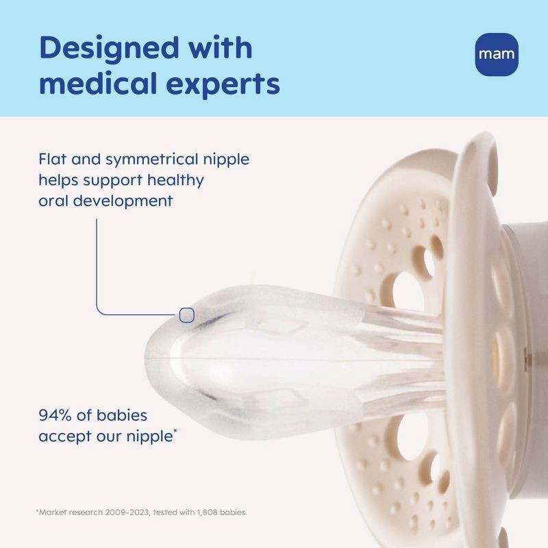 - Symmetrical orthodontic nipple is always right-side up