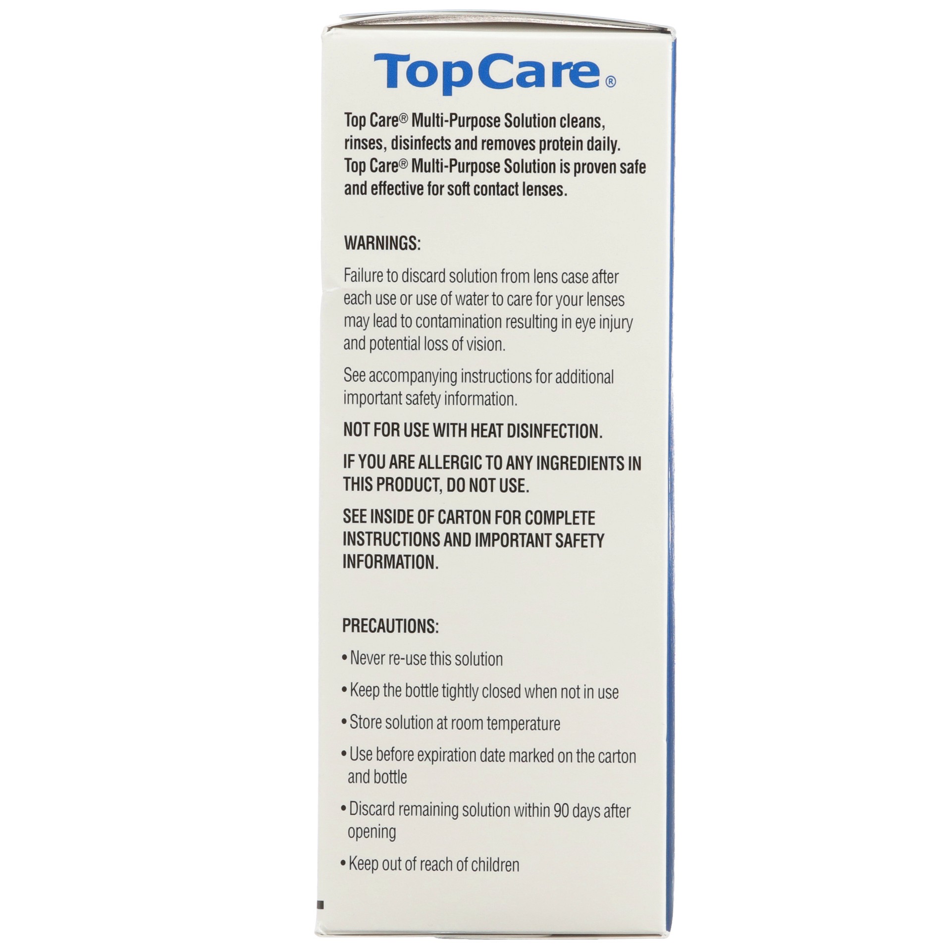 Top care multi-purpose solution cleans, rinses, disinfects and removes protein daily. Top care multi-purpose solution is proven safe and effective for soft contact lenses. Top care multi-purpose solut…