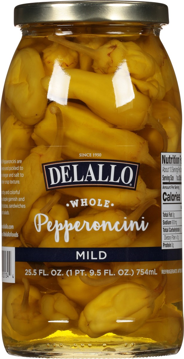 Since 1950. DeLallo Mild Pepperoncini are grown in Greece and pickled to perfection in vinegar and salt to preserve their crisp texture. These crunchy and colorful peppers are a staple garnish and con…