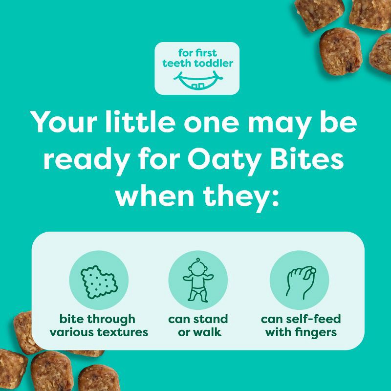 - Your little one may be ready for Oaty Bites when they bite through various textures, can stand or walk & can self-feed with fingers
