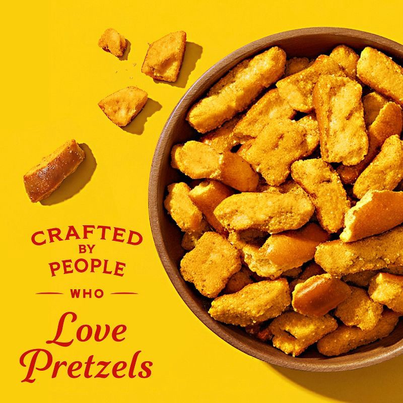 - Generously seasoned Cheddar Cheese Flavored sourdough pretzel pieces