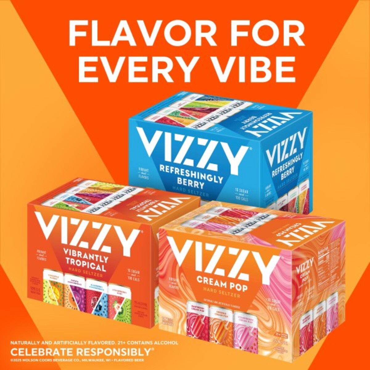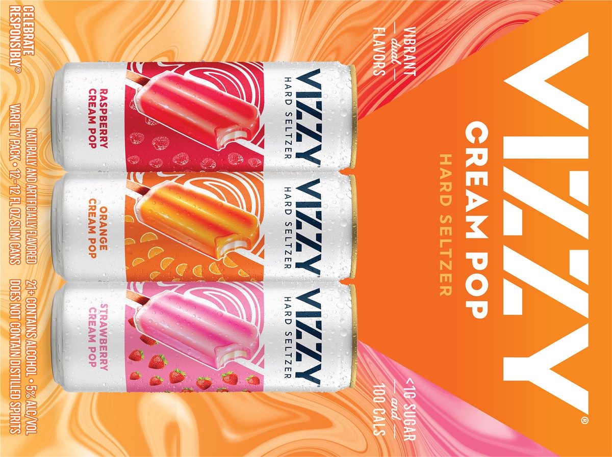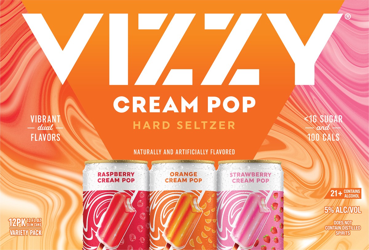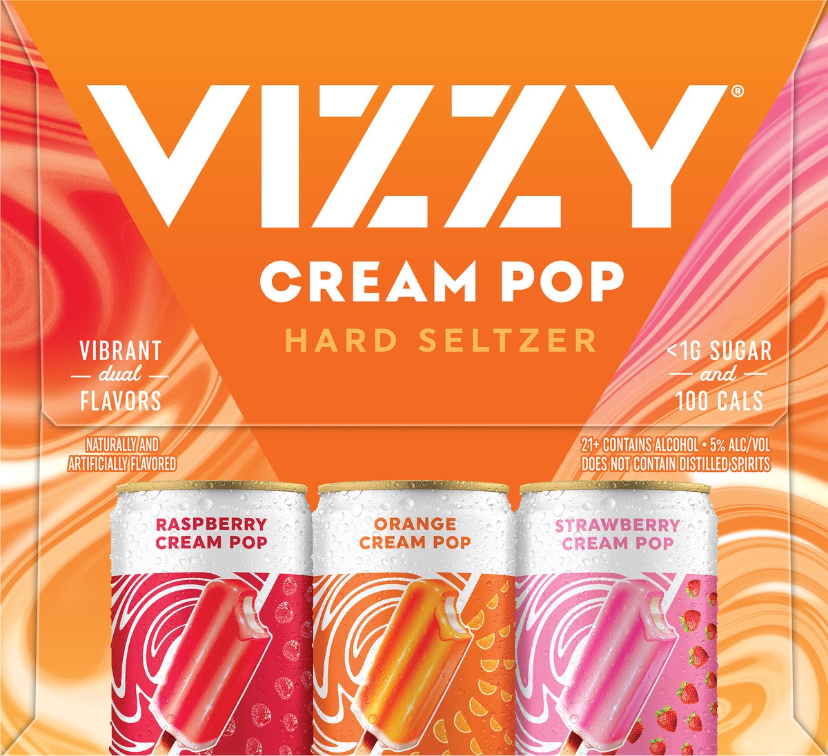 The Vizzy Cream Pop Hard Seltzer Variety Pack features vibrant dual flavors with 5.0% ABV. 6 cans of Orange Cream Pop, 3 cans of Raspberry Cream Pop and 3 cans of Strawberry Cream Pop lead with refres…