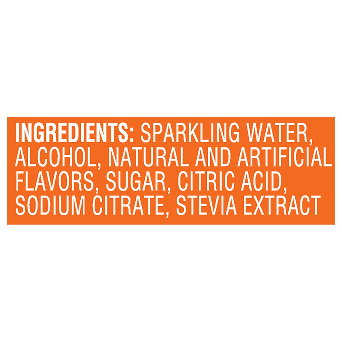 Raspberry Cream Pop: Sparkling Water, Alcohol, Natural and Artificial Flavors, Sugar, Citric Acid, Sodium Citrate, Stevia Extract. Orange Cream Pop: Sparkling Water, Alcohol, Natural and Artificial Fl…