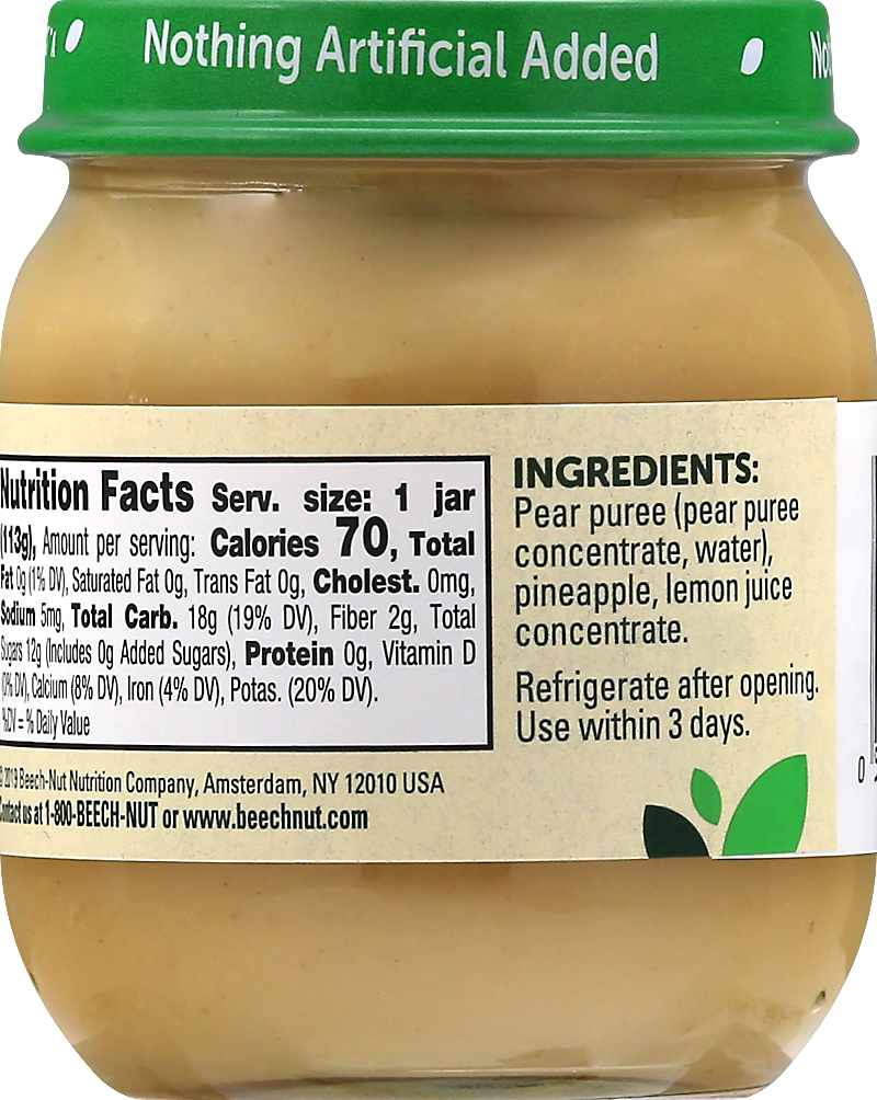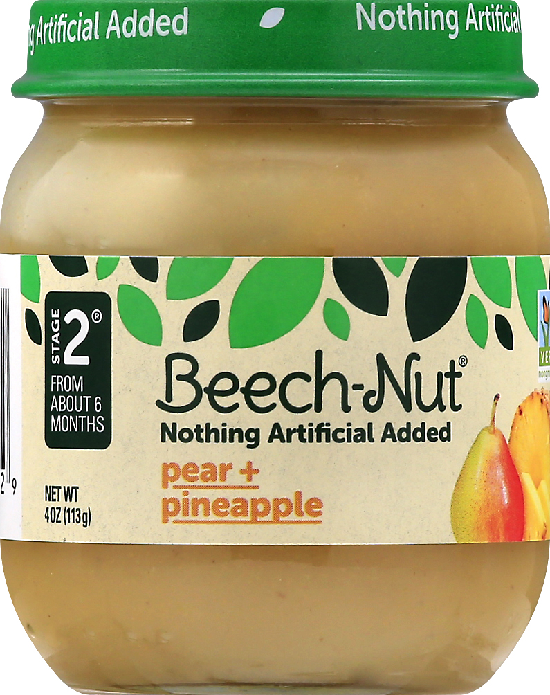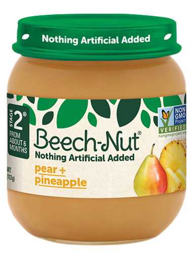 Beech-Nut Baby Food is made with simple, non-GMO ingredients. Our pear and pineapple baby food puree has no artificial preservatives, colors or flavors and no added sweeteners--just what you'd expect …