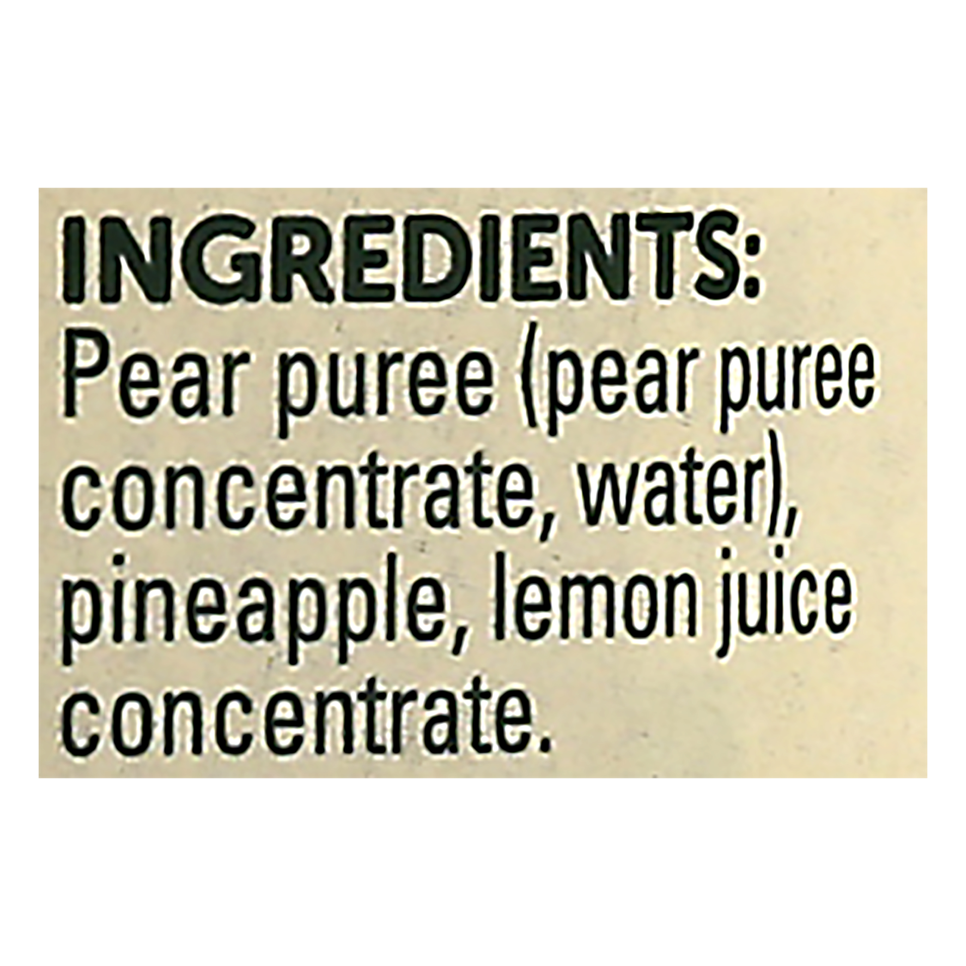 Pear Puree (Pear Puree Concentrate, Water), Pineapple, Lemon Juice Concentrate.