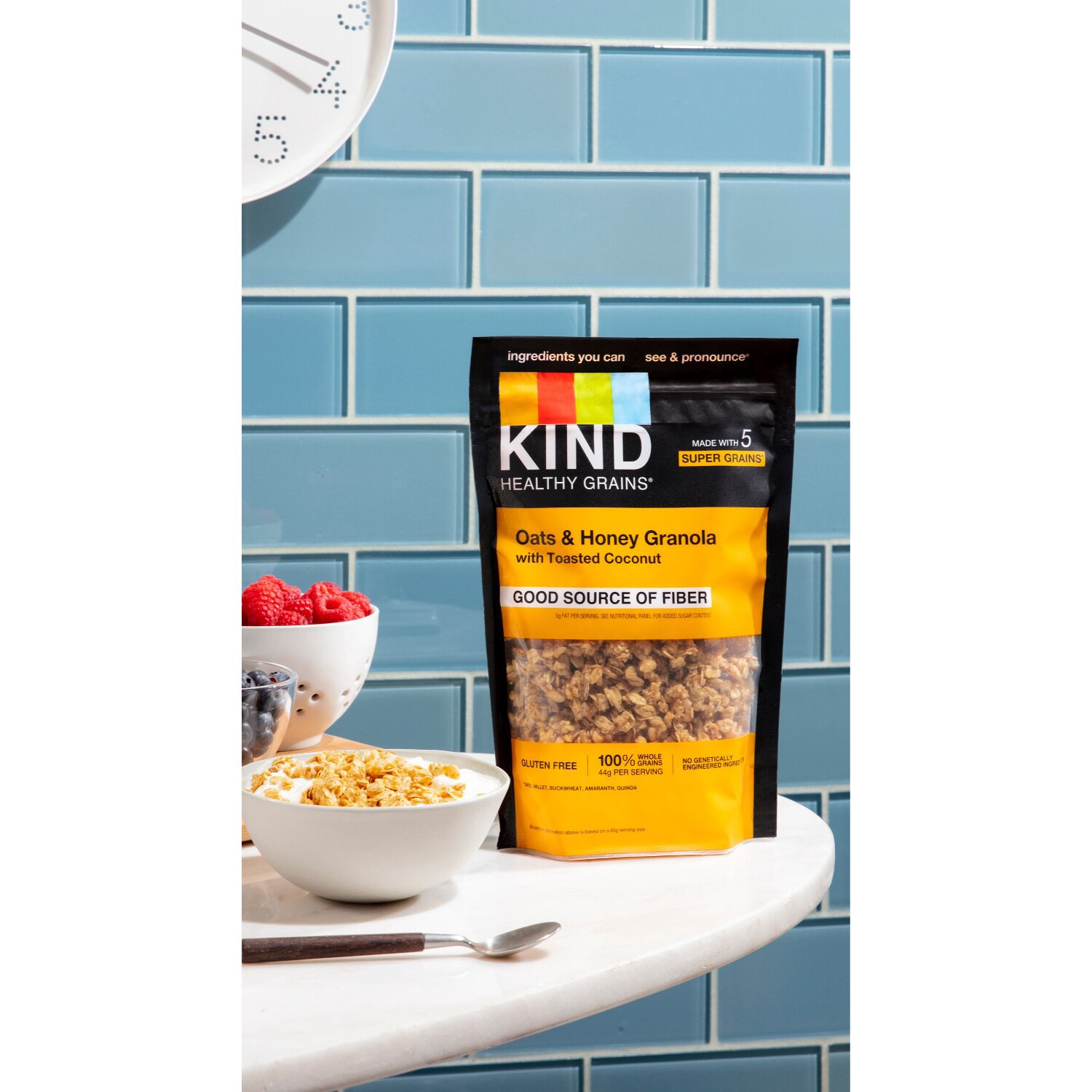 - KIND HEALTHY GRAINS Oats & Honey with Toasted Coconut granola clusters make a nutritious option for any time of day