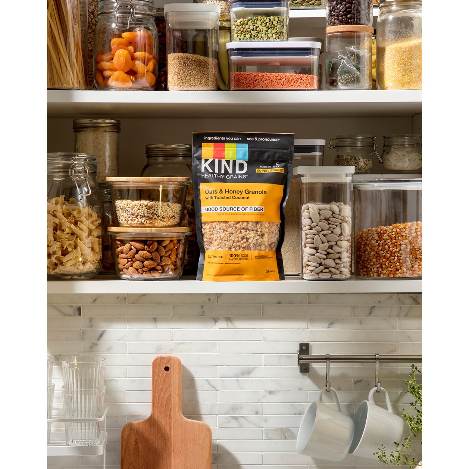 KIND HEALTHY GRAINS Oats & Honey Granola with Toasted Coconut are an all-in-one, convenient, hand-to-mouth healthy snack mix. These 100% whole grain clusters are made with 5 super grains - oats, mille…
