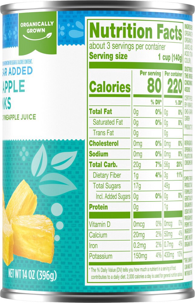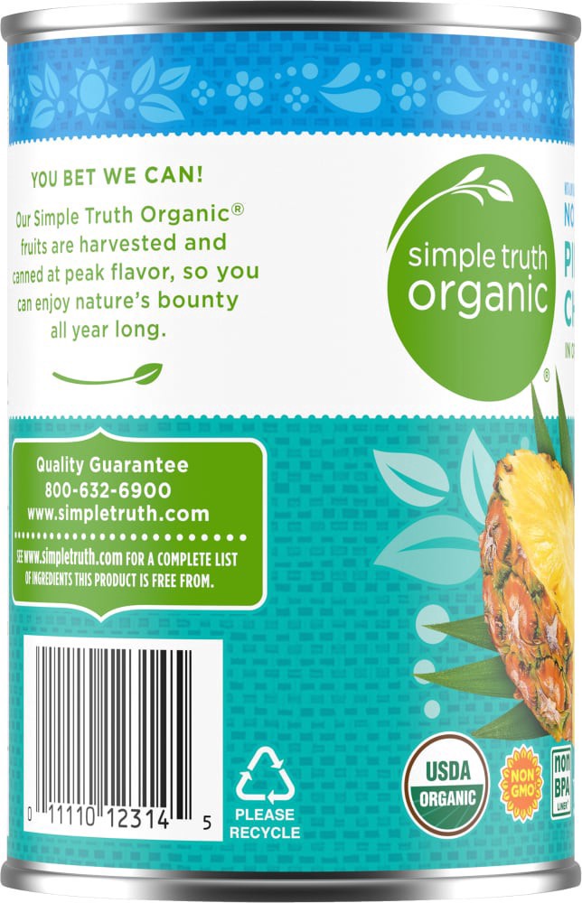 Simple Truth Organic® Canned Pineapple Chunks No Sugar Added in Pineapple Juice delivers unrivaled authenticity in every bite. Bursting with sun-ripened, organically-grown pineapple and flooded with o…