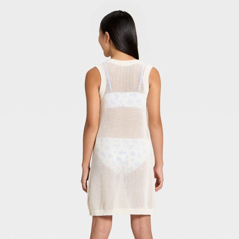 slide 1 of 3, Girls' Solid Crochet Dress Swimsuit Cover-Up - art class™ White L, 1 ct
