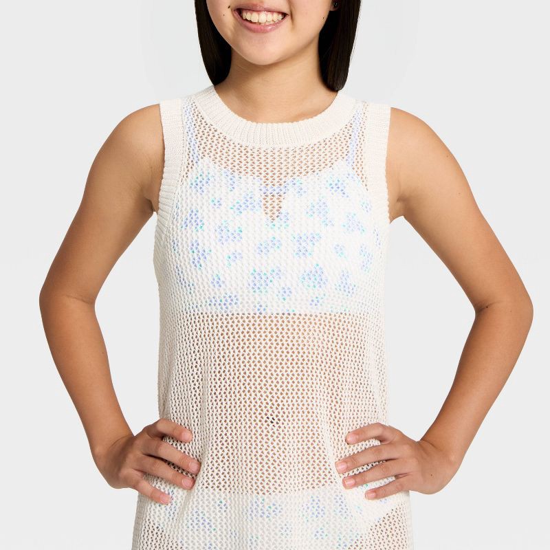 Whether they're headed to the waterpark or a beach vacation, this Crochet Swimsuit Cover Up from art class™ is a great pick for their fun outings. Made of 100% recycled polyester, this sleeveless swim…