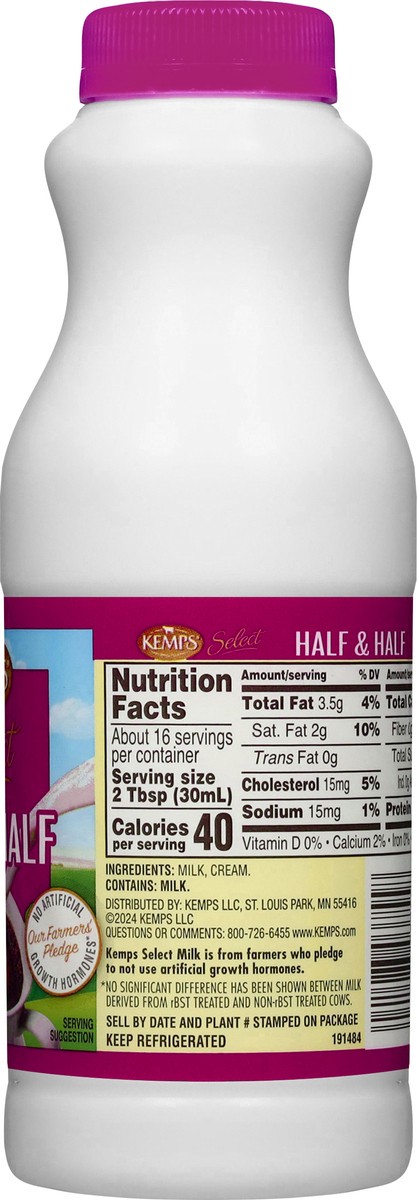 Kemps Select Half & Half is made with real milk and cream from family farms, so it's smooth, creamy, and delicious every time. Made from cows not treated with artificial growth hormones, Kemps half an…