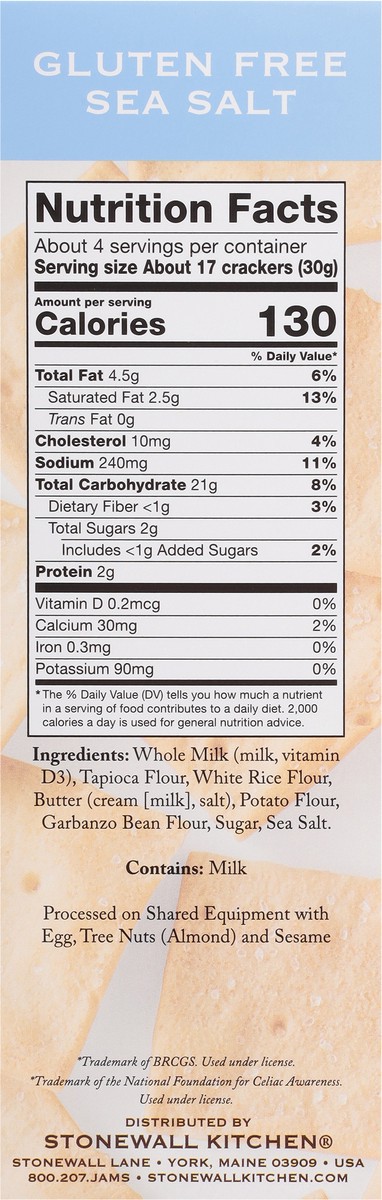 Stonewall Kitchen Gluten Free Sea Salt Crackers 4.40oz