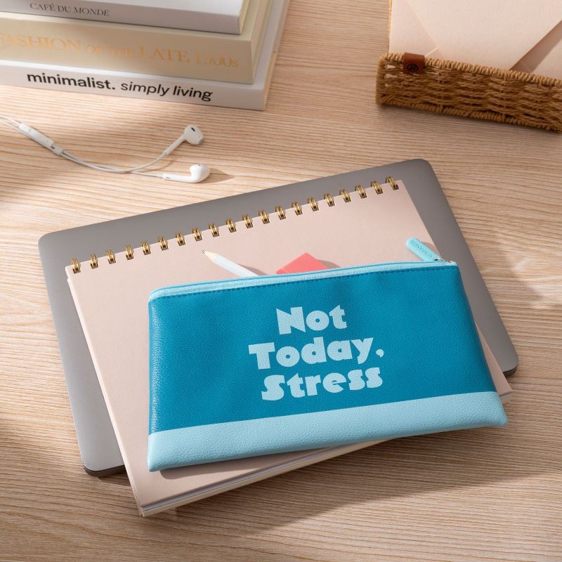 - Premium leather exterior featuring "Not Today. Stress" design for daily motivation on the move