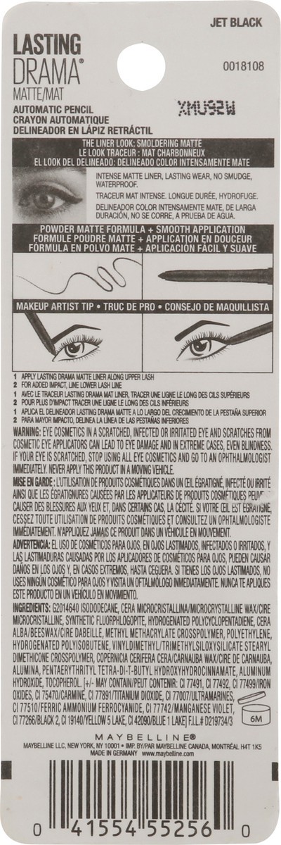 Maybelline Lasting Drama Jet Black Matte Waterproof Automatic Pencil 0.01 oz