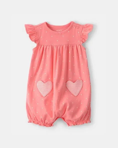 Carters Baby Girl Heart Pocket Short-Sleeve Romper - Pink Pink NB