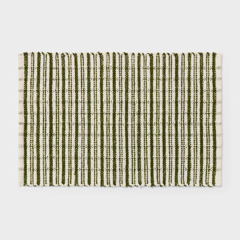 Elevate your bathroom decor with this Avery Plaid Handloom Woven Bath Rug from Threshold™. Featuring an ivory and green plaid pattern, this handmade rug brings warmth, texture and a touch of artisanal…