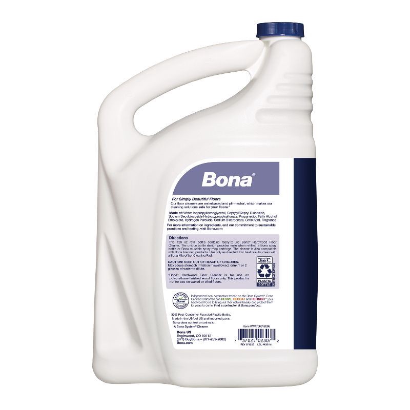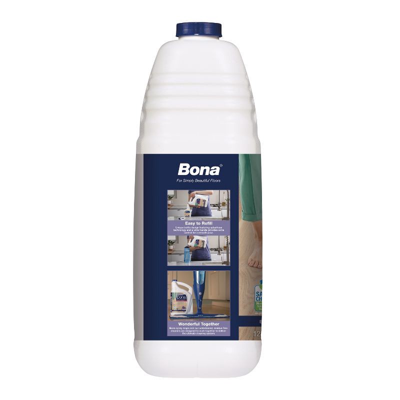 Relax. Bona makes it easy to care for your floors. Bona Hardwood Floor Cleaner Refill fills your empty Bona cartridge or spray bottle with ready-to-use Bona Hardwood Floor Cleaner. The bottle has spla…