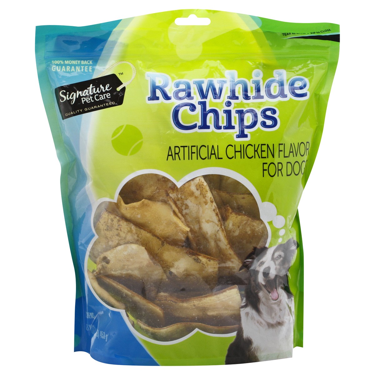 Signature Pet Care Dog Chew Rawhide Chips Chicken Flavor Pouch - 16 Oz