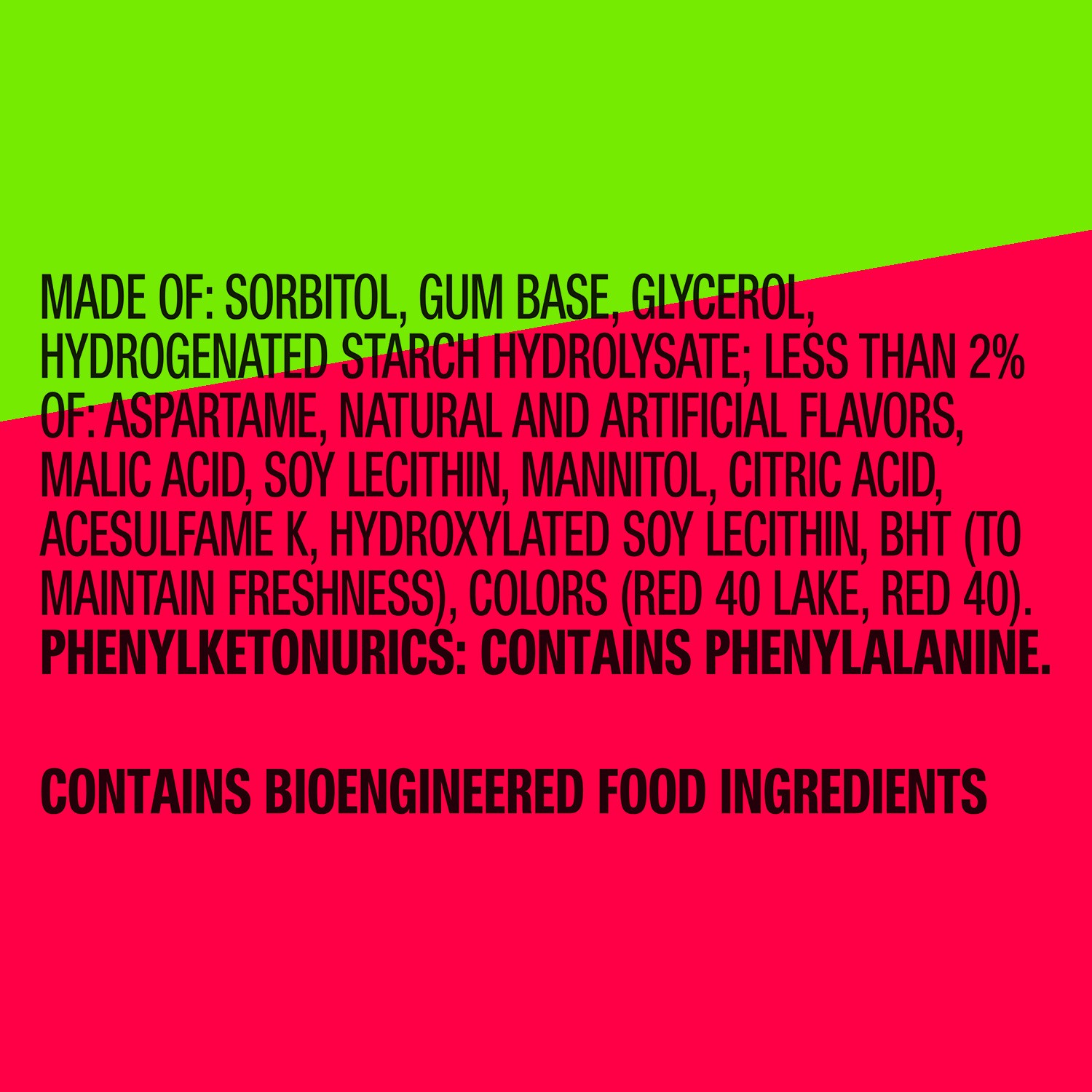 Sorbitol, Gum Base, Glycerol, Hydrogenated Starch Hydrolysate; Less than 2% of: Aspartame, Natural and Artificial Flavors, Malic Acid, Soy Lecithin, Mannitol, Citric Acid, Acesulfame K, Hydroxylated S…