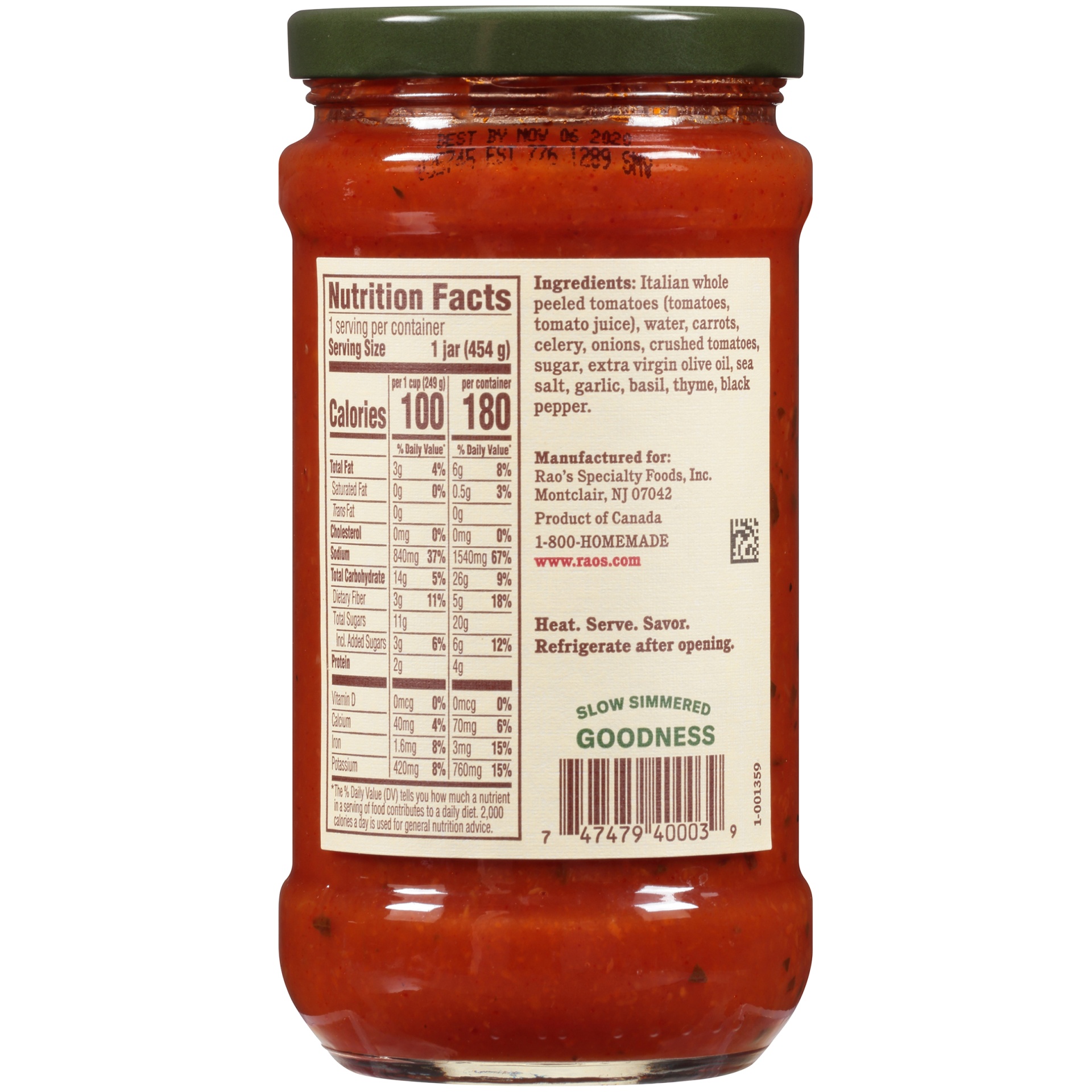 - Rao’s Made For Home Tomato Basil Soup uses Italian tomatoes simmered with carrots, celery, onion, basil and garlic