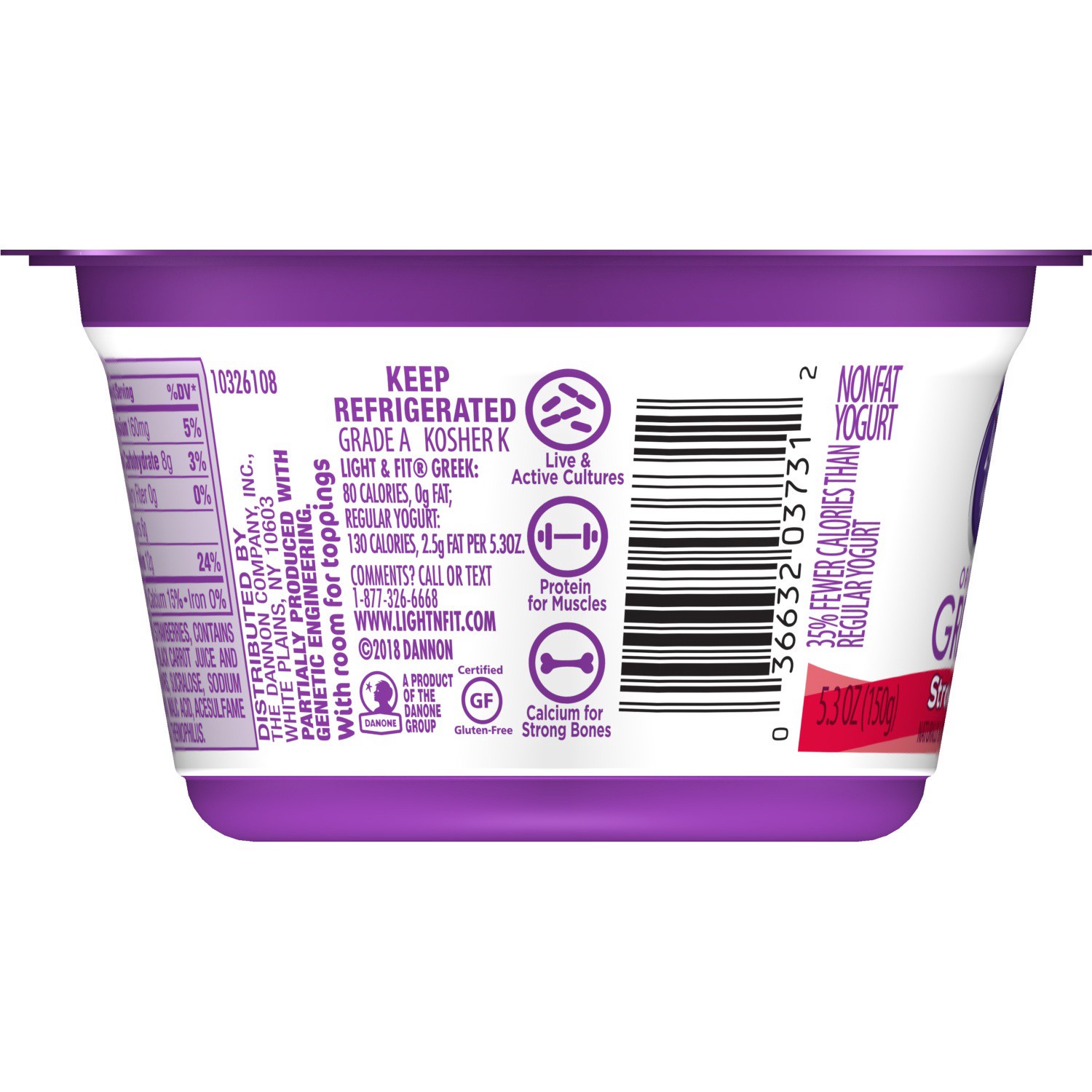 Light + Fit Greek Strawberry Nonfat Gluten-Free Yogurt - 5.3 Oz