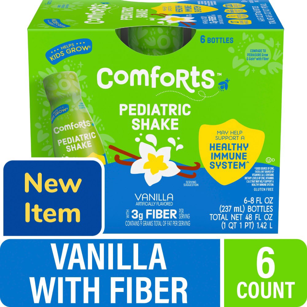 Comforts™ Vanilla Artificially Flavored Pediatric Shake offers 27 vitamins & minerals in each 8 fl oz bottle. With a tasty flavor, this pediatric shake may help support a healthy immune systemˆ. Inten…