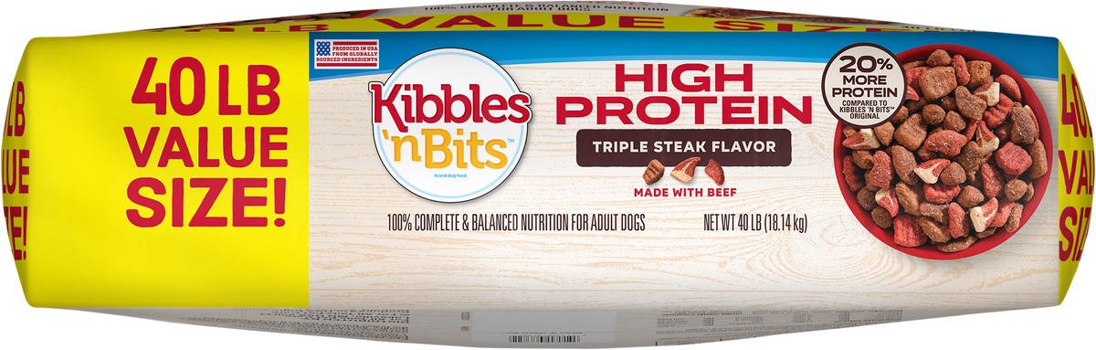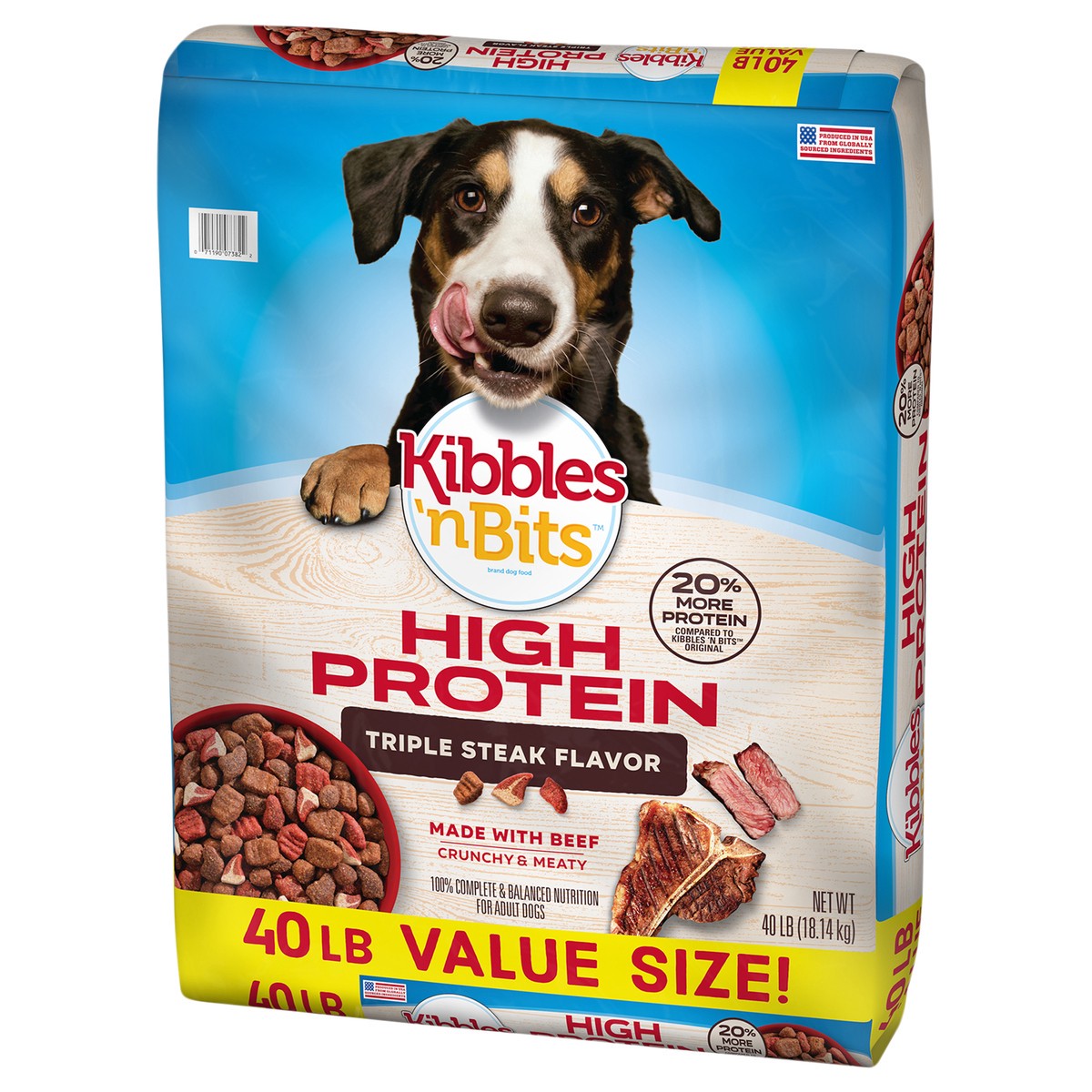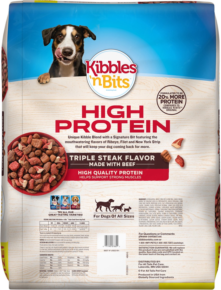 Kibbles 'n Bits Triple Steak Flavor Dry High Protein Dog Food, 40 lb. Bag