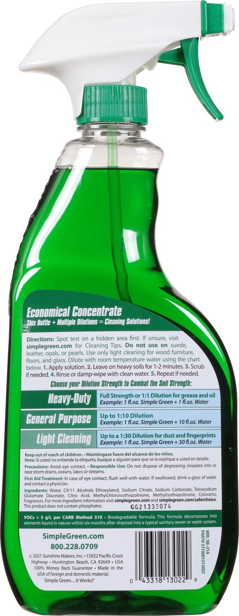 Economical & versatile formula. Economical concentrate. This bottle + multiple dilutions = cleaning solutions! This product does not contain phosphates. Simple Green - it works! Safer Choice: Meets U.…