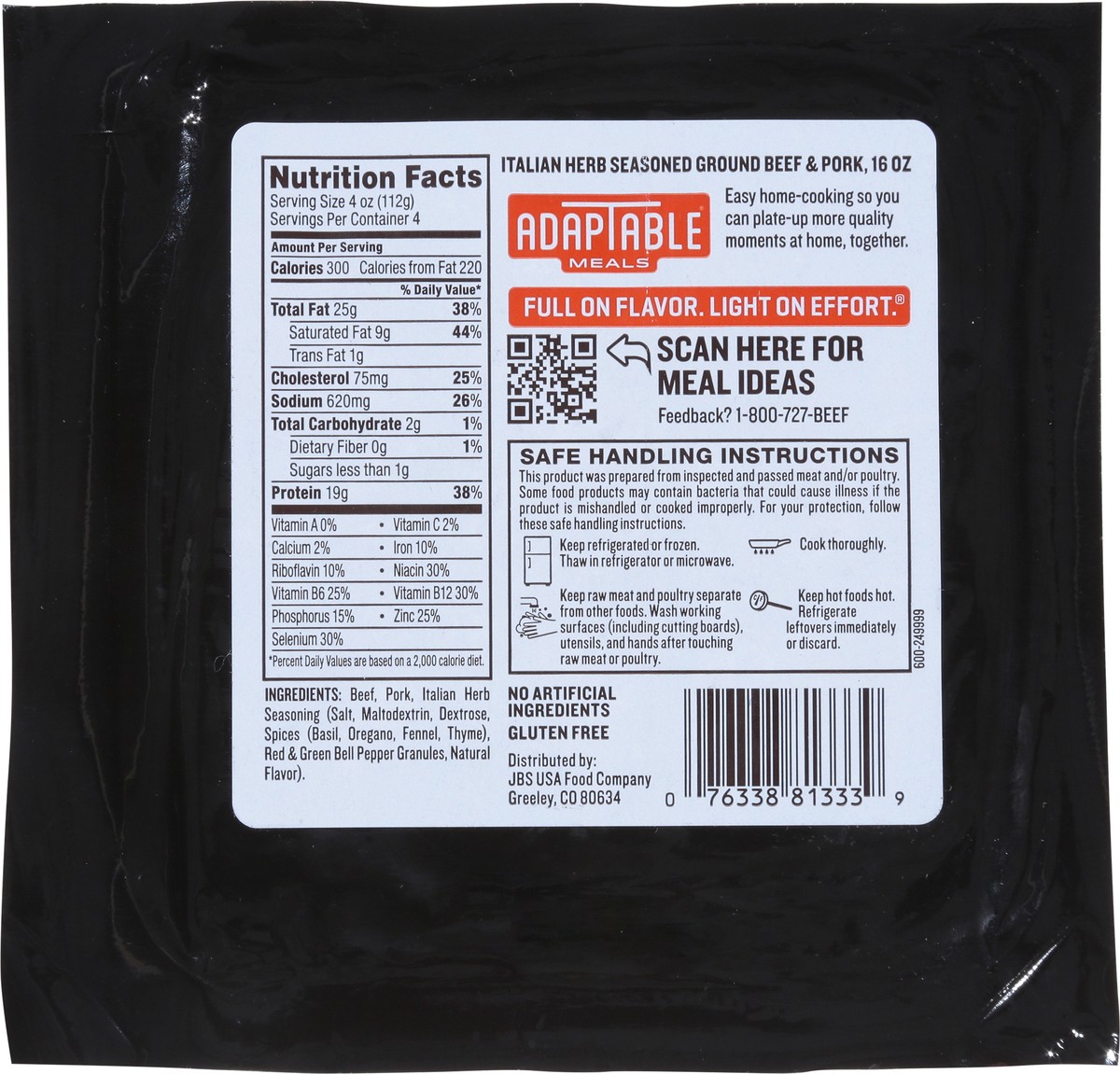 Adaptable Meals Italian Herb Seasoned Ground Beef and Pork 16 oz