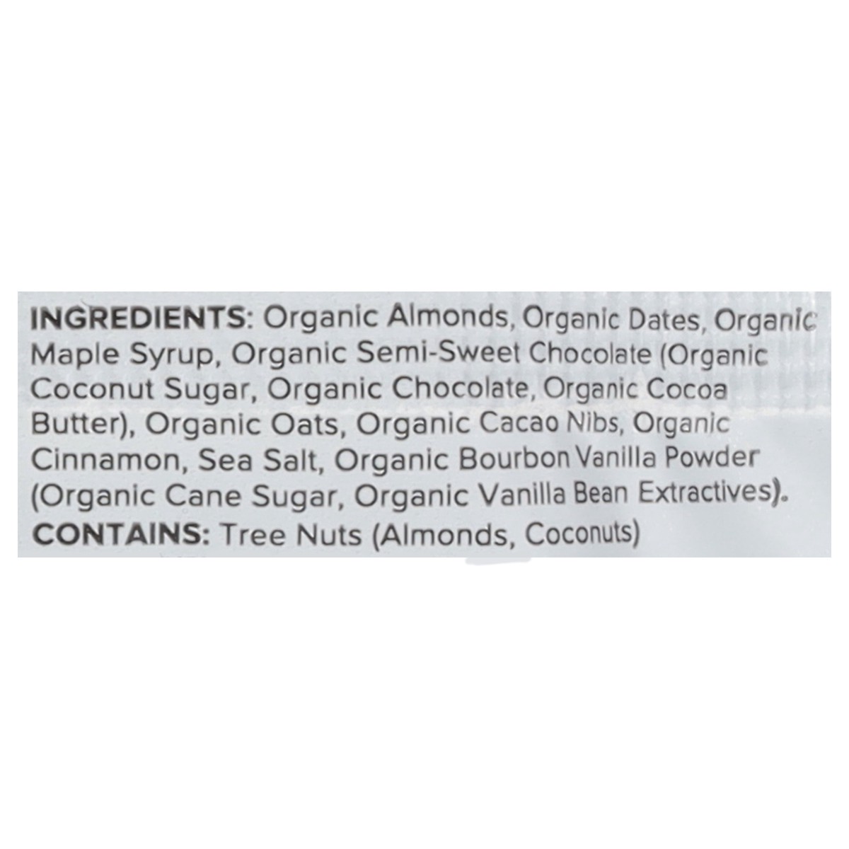 Organic Almonds, Organic Dates, Organic Maple Syrup, Organic Semi-Sweet Chocolate (Organic Coconut Sugar, Organic Chocolate, Organic Cocoa Butter), Organic Oats, Organic Cacao Nibs, Organic Cinnamon, …