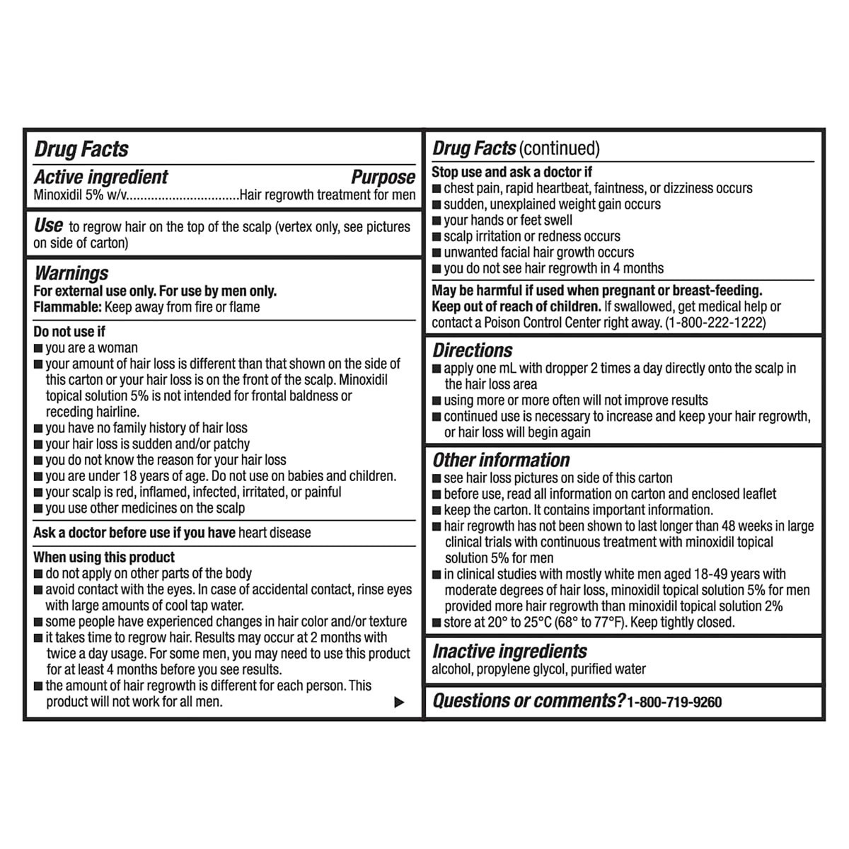 Compare to Men's Rogaine Extra Strength active ingredient. Minoxidil Topical Solution, 5 Percent is an extra strength topical hair loss treatment used to help regrow hair on top of the scalp (vertex o…