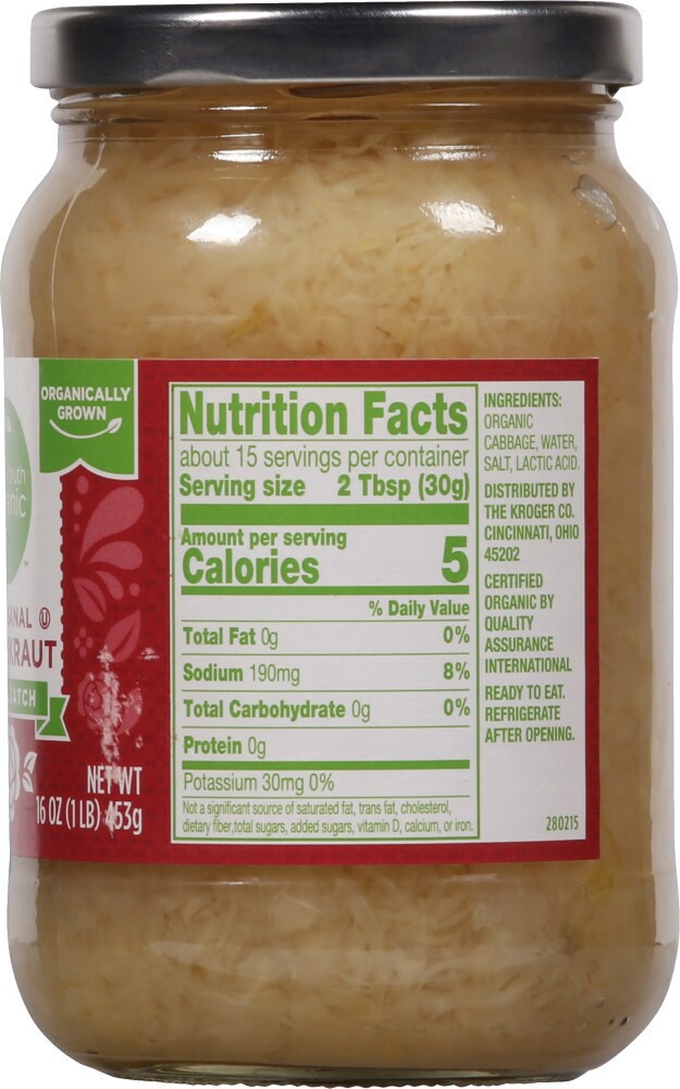 Ingredients: Organic Cabbage, Water, Salt, Lactic Acid.