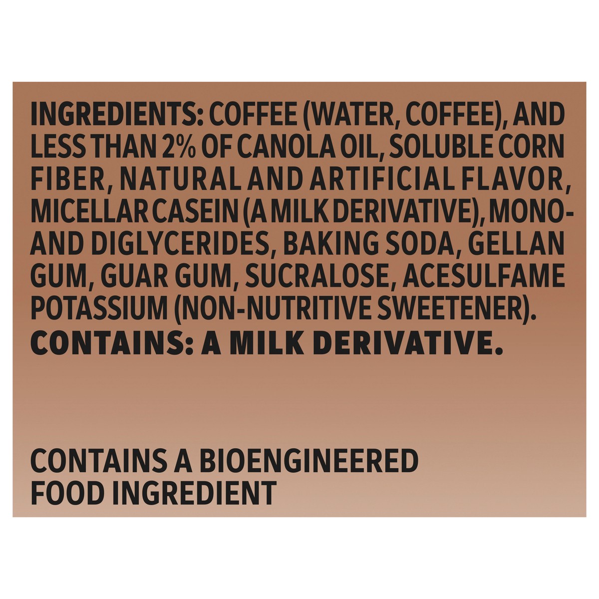 COFFEE (WATER, COFFEE), AND LESS THAN 2% OF CANOLA OIL, SOLUBLE CORN FIBER, NATURAL AND ARTIFICIAL FLAVOR, MICELLAR CASEIN (A MILK DERIVATIVE), MONO- AND DIGLYCERIDES, BAKING SODA, GELLAN GUM, GUAR GU…