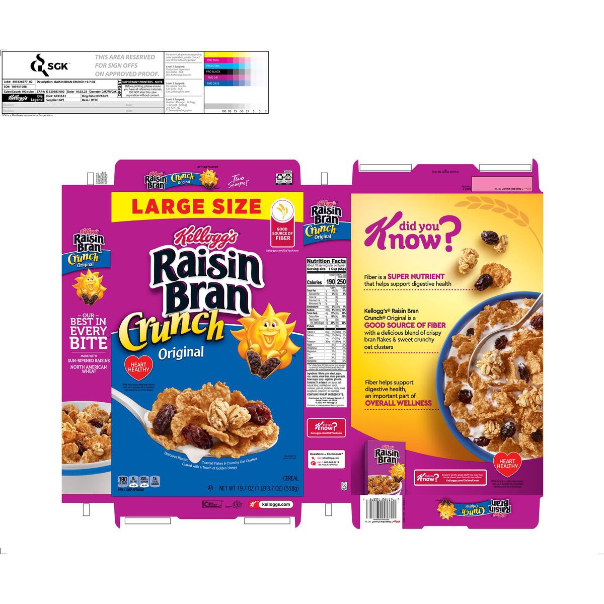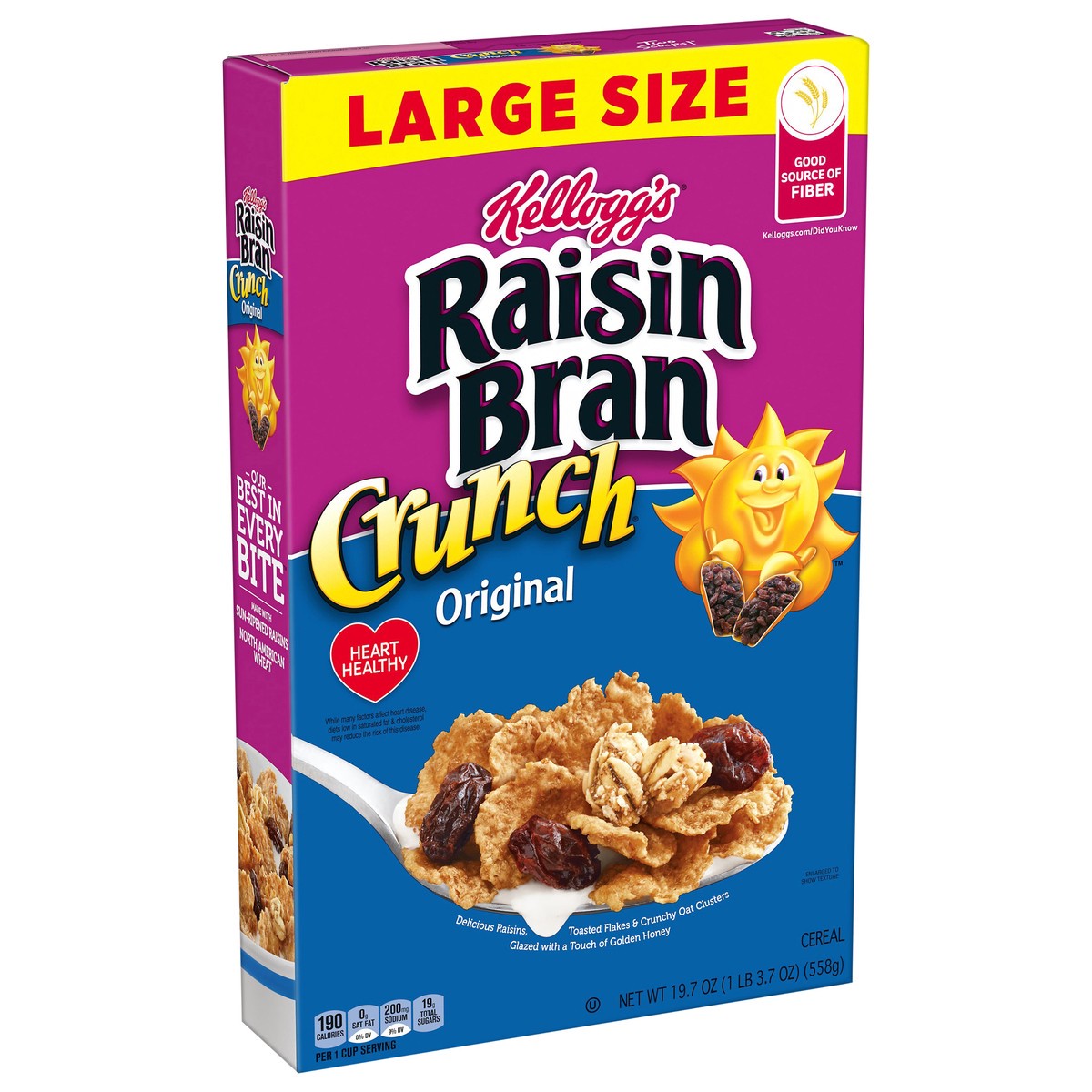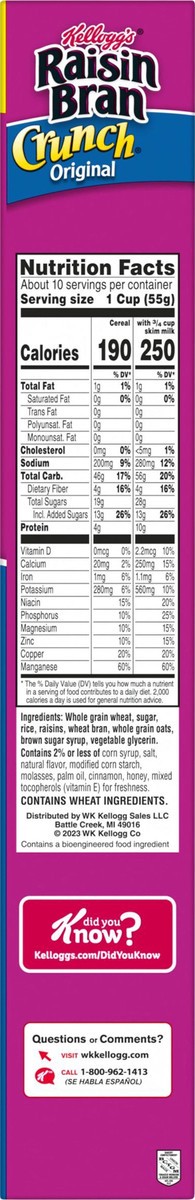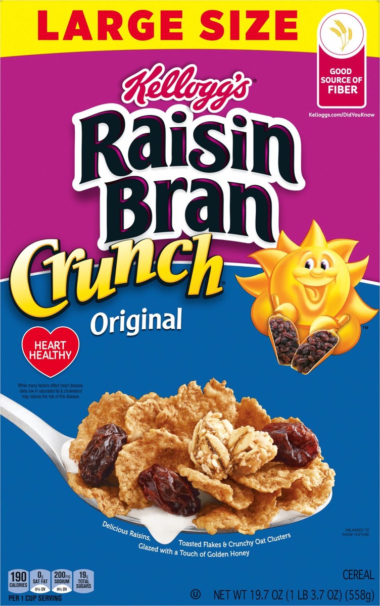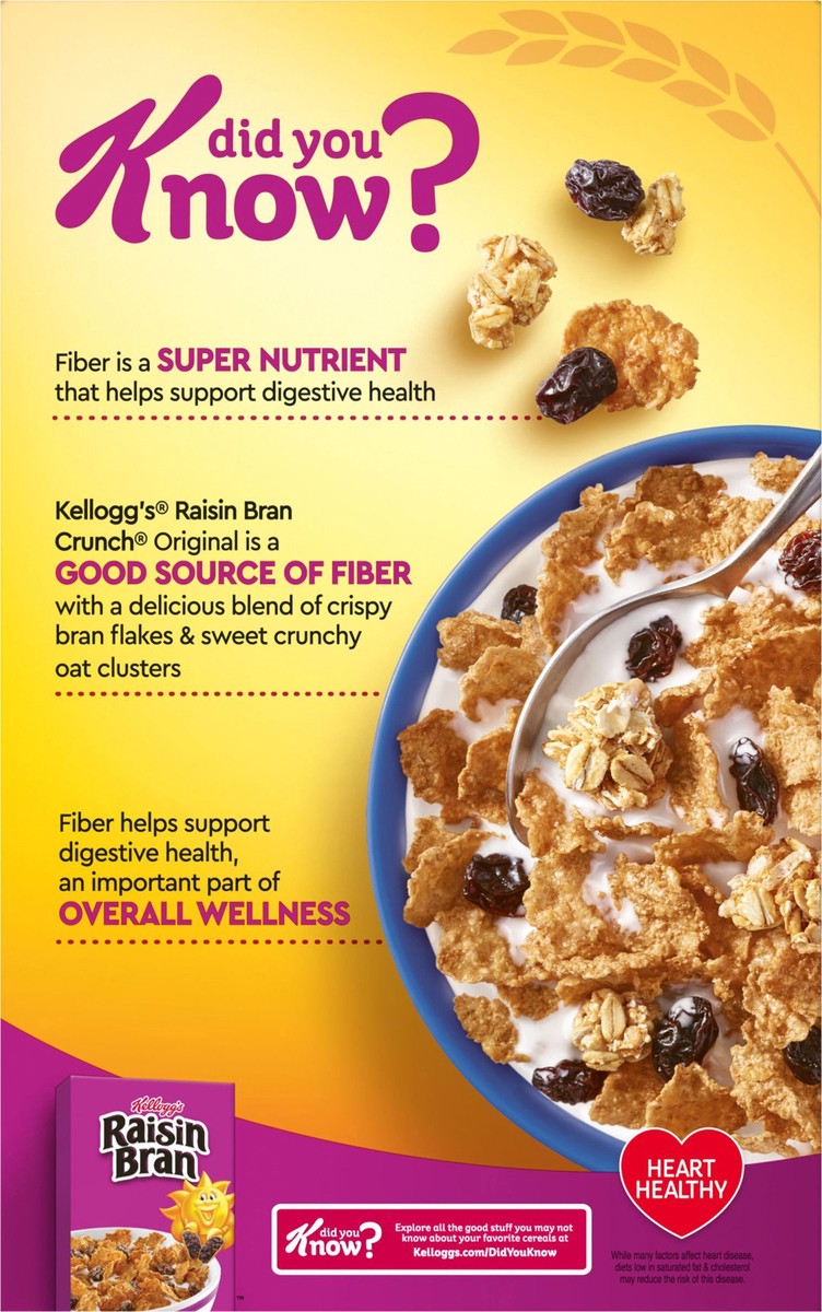 Have a bowl of get up and go with the delicious taste of Kellogg's Raisin Bran Crunch, a delicately crafted, wholesome breakfast cereal that helps bring energy to start your day. This satisfyingly cru…