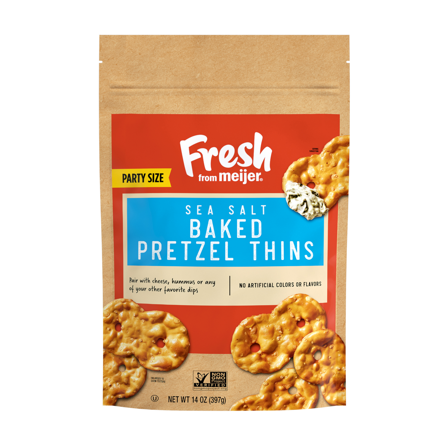 Enjoy the crispy texture and subtle sea salt flavor of Fresh from Meijer Sea Salt Pretzel Thins. Perfect for pairing with cheese, hummus, or your favorite dips, these thins are a versatile snack optio…