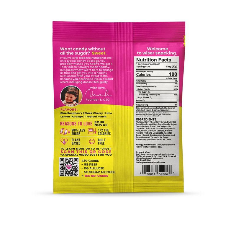 Each bag of our Sour Novas has only 100 calories and 5g of sugar. The best part, they taste exactly like traditional sour candies so you can satisfy your gummy craving without all the sugar.