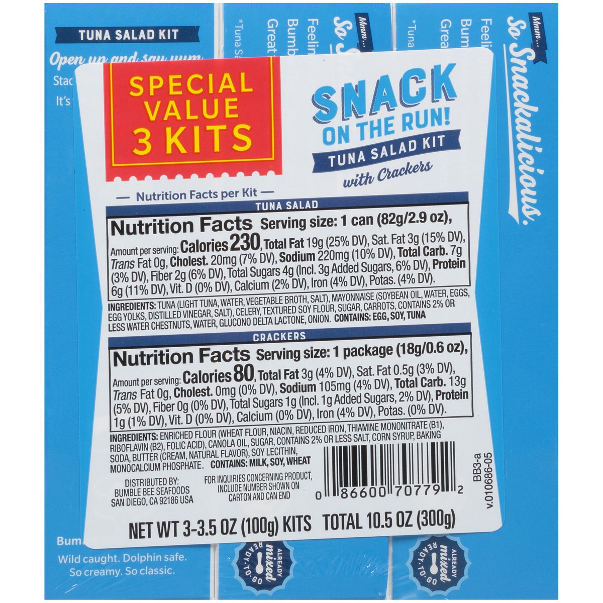 Special value. Snack on the run! 1x. 6x. 1x. Open up and say yum. Stack em. Snack em. Love em. It''s what inside that counts. What''s Inside: 6 buttery crackers. 1 handy spoon. 1 Bumble Bee tuna salad…