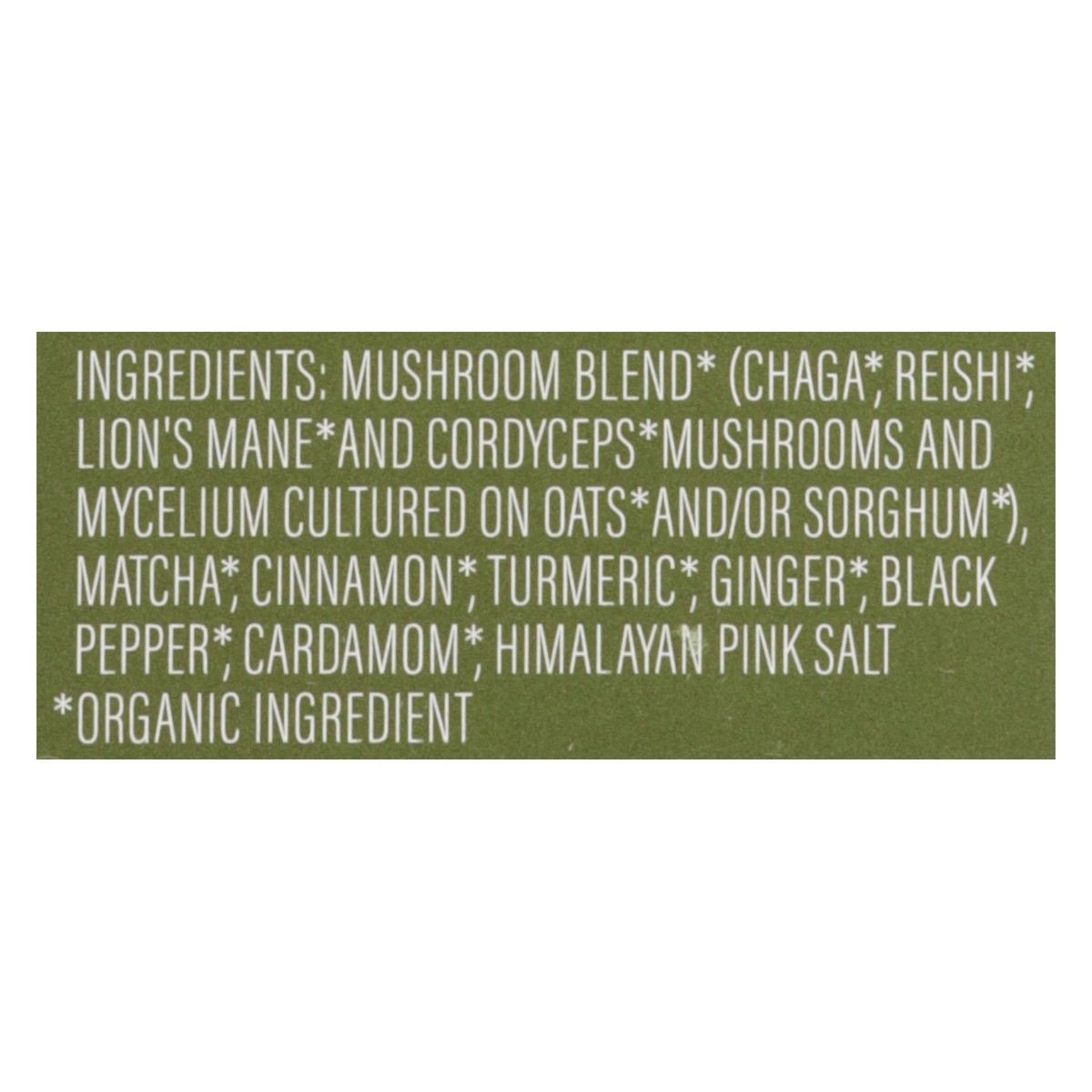Mushroom Blend* (Chaga*, Reishi*, Lion's Mane*and Cordyceps* Mushrooms and Mycelium Cultured on Oats* and/or Sorghum*), Matcha* Cinnamon*, Turmeric*, Ginger*, Black Pepper*, Cardamom*, Himalayan Pink …