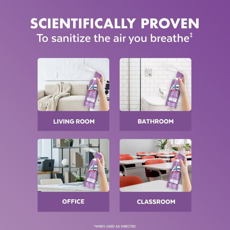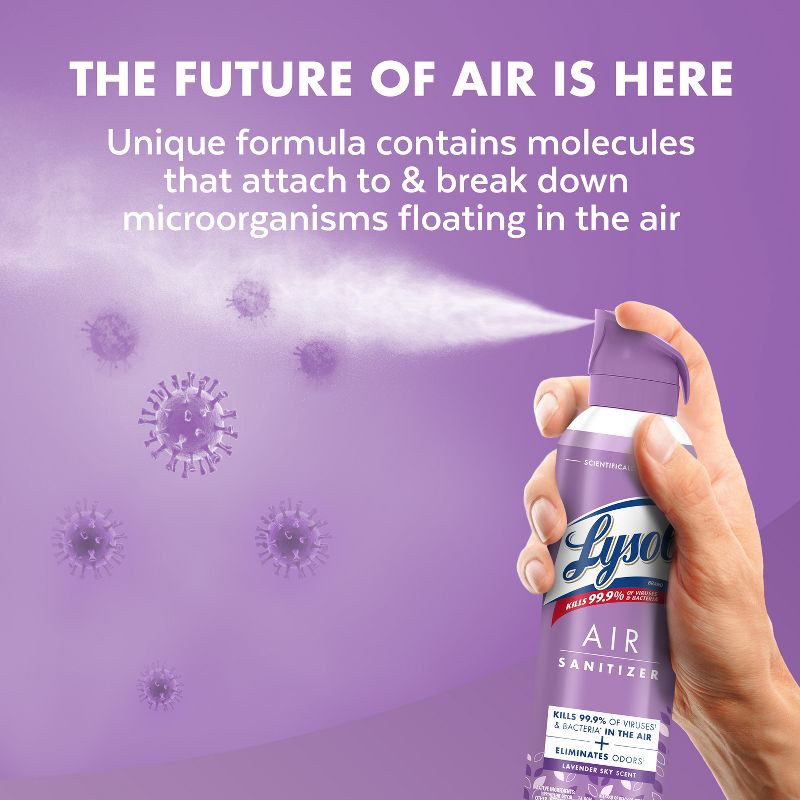 - REVOLUTIONARY LYSOL SPRAY: Lysol Air Sanitizer with Odor Eliminator* is scientifically tested and proven to kill 99.9% of airborne viruses and bacteria*, ensuring the air in your room is sanitized