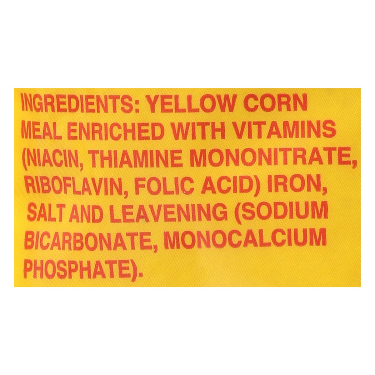 Yellow Corn Meal Enriched with Vitamins (Niacin, Thiamine Mononitrate, Riboflavin, Folic Acid) Iron, Salt and Leavening (Sodium Bicarbonate, Monocalcium Phosphate).