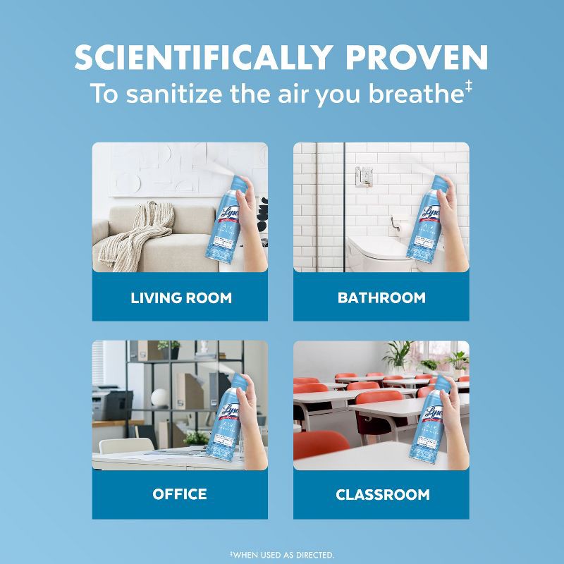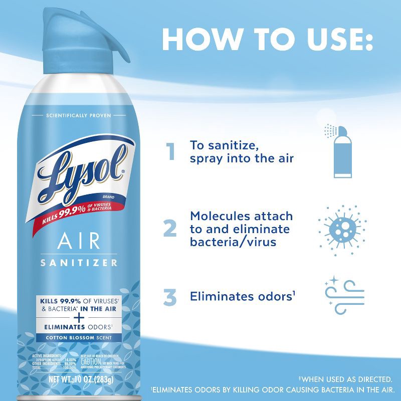 - REVOLUTIONARY LYSOL SPRAY: Lysol Air Sanitizer with Odor Eliminator* is scientifically tested and proven to kill 99.9% of airborne viruses and bacteria*, ensuring the air in your room is sanitized