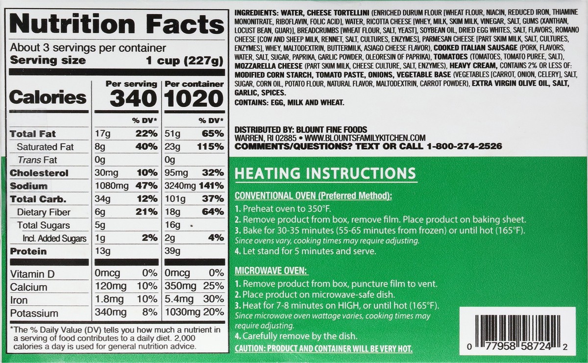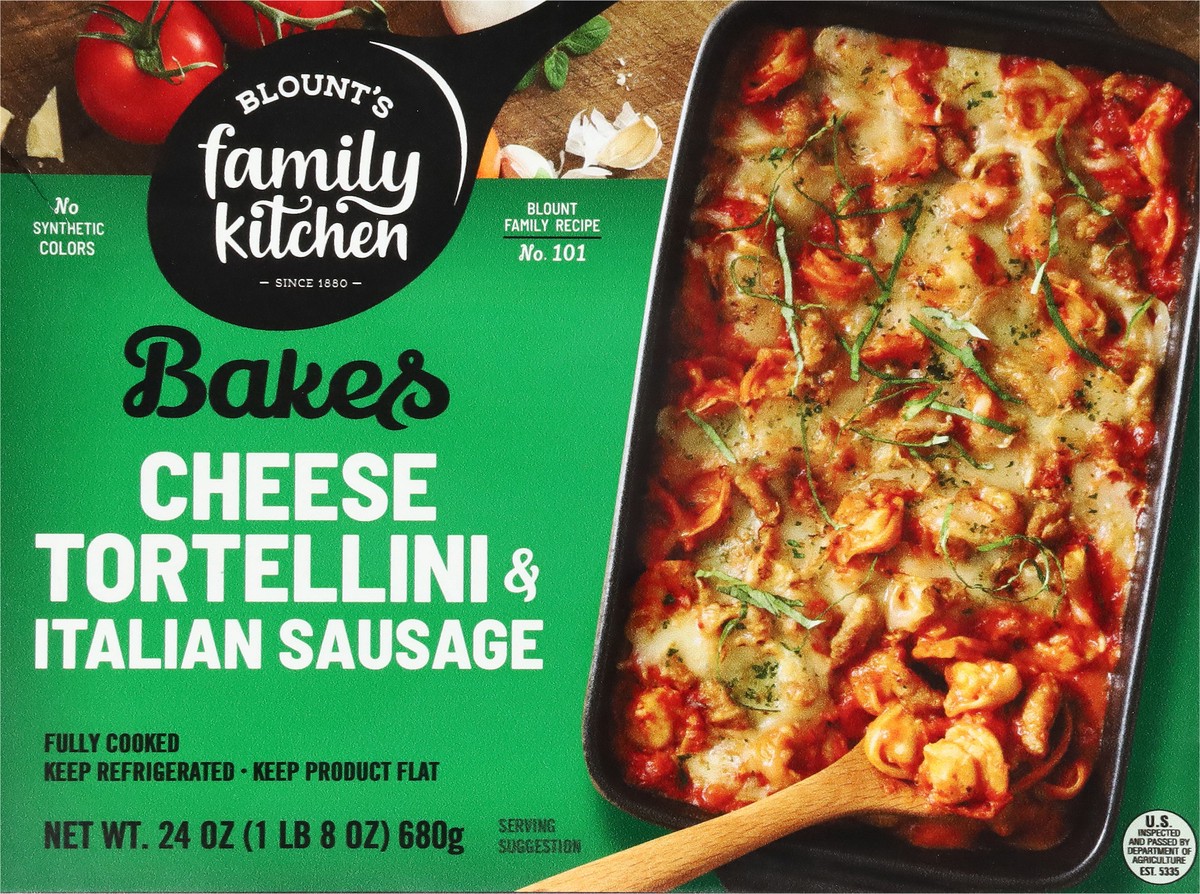 Enjoy the home-cooked taste of a delicious, packaged meal with Blount's Family Kitchen Cheese Tortellini & Italian Sausage. This oven ready meal brings together a bounty of carefully sourced ingredien…