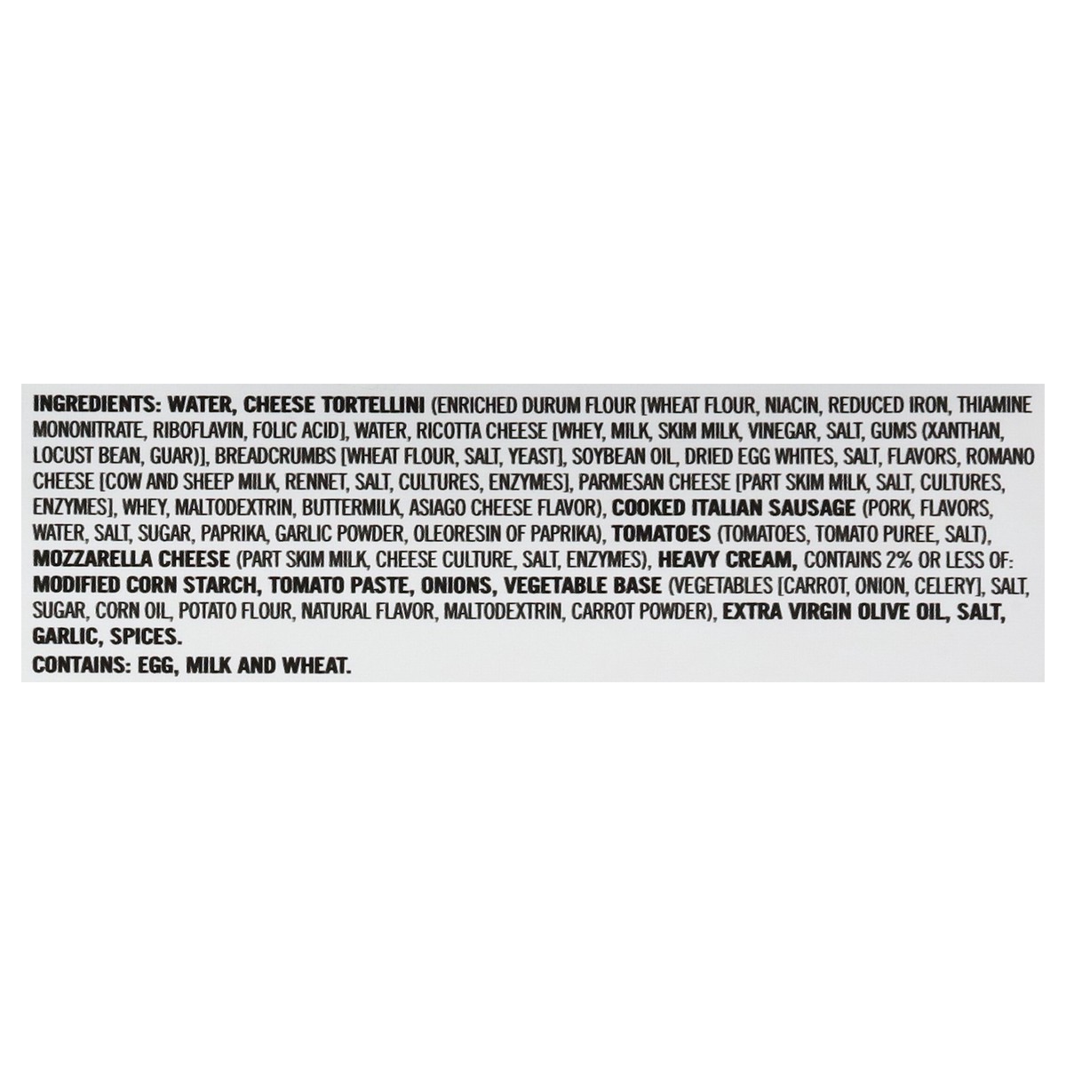 Water, Cheese Tortellini (Enriched Durum Flour [Wheat Flour, Niacin, Reduced Iron, Thiamine Mononitrate, Riboflavin, Folic Acid], Water, Ricotta Cheese [Whey, Milk, Skim Milk, Vinegar, Salt, Gums (Xan…