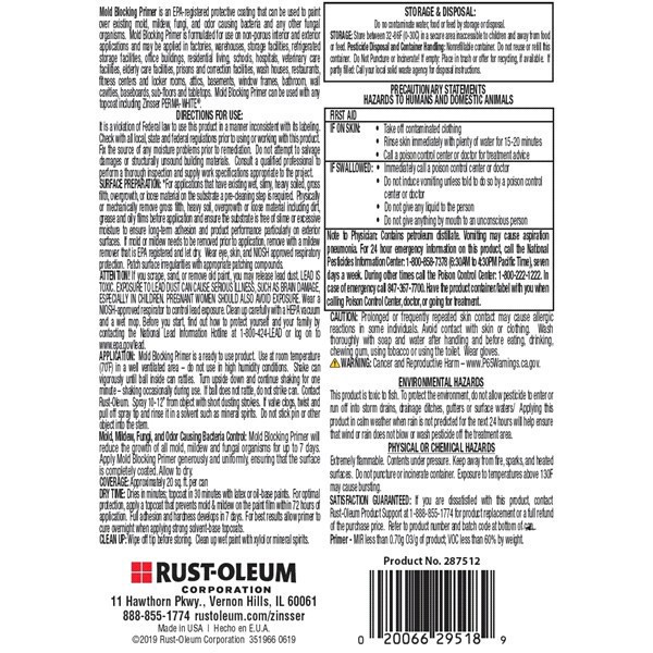 Rustoleum Zinsser Mold Blocking Primer - 287512, White