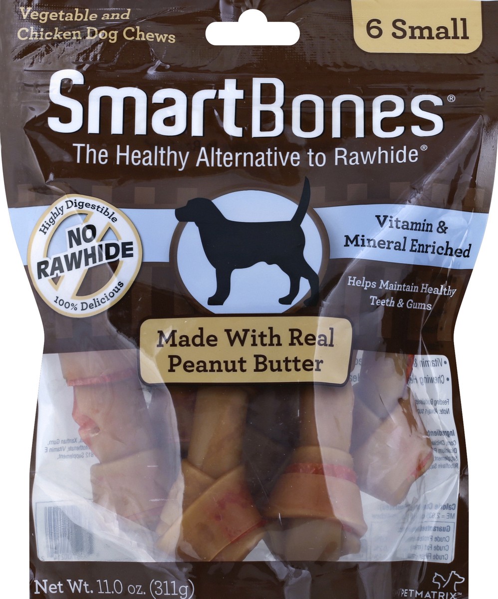 Made with real peanut butter. Vitamin & mineral enriched. No rawhide. Highly digestible. 100% delicious. Helps maintain healthy teeth & gums. The healthy alternative to rawhide. SmartBones have all th…