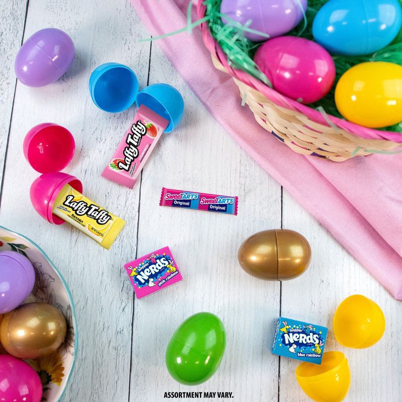 This prefilled egg mix comes with delicious Easter candy that you know and love. Each bag contains twelve (12) prefilled plastic Easter eggs with classic treats including SweeTARTS Original, NERDS, an…